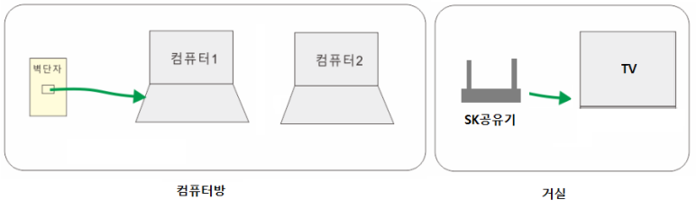 컴퓨터 방에 새로운 컴퓨터를 추가로 설치하여 인터넷을 사용하려고 합니다.