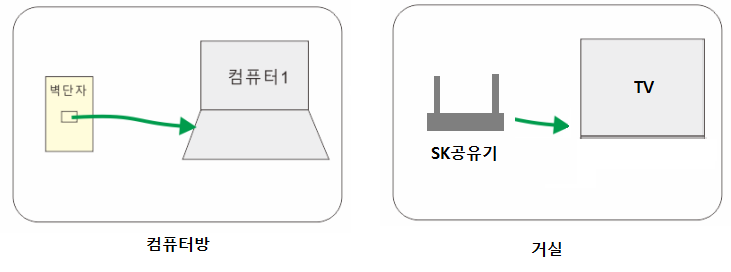 컴퓨터 방에 있는 벽 쪽 인터넷 연결 단자 1개로, 기존 컴퓨터 인터넷 연결하여 사용하고 있습니다.