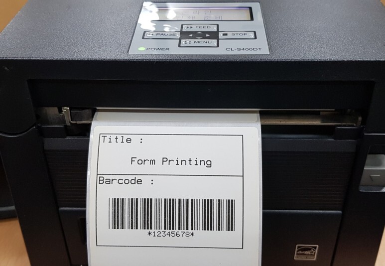 위 명령어를 프린터로 전송하면 저장되어 있던 폼을 호출하여 사진과 같이 인쇄 됩니다.