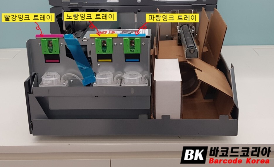 컬러라벨프린터 LX3000 내부 오른쪽면에는 잉크 트레이가 있습니다.