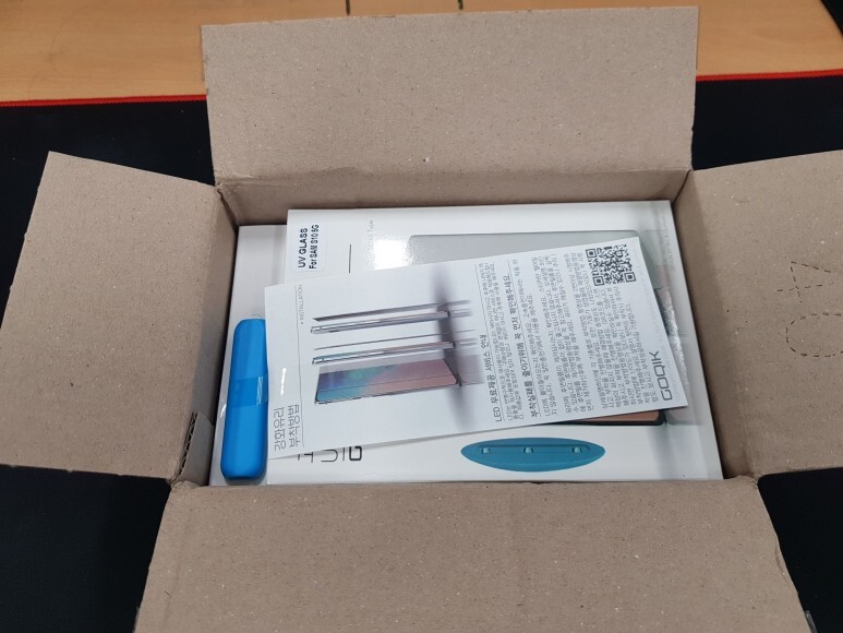 보호필름을 안 붙이고 사용했는지 액정 화면에 기스가 좀 많이 있어서 액정보호필름을 알아 보았는데 UV 용액을 사용하여 강화유리를 붙이는 제품으로 구입했습니다.