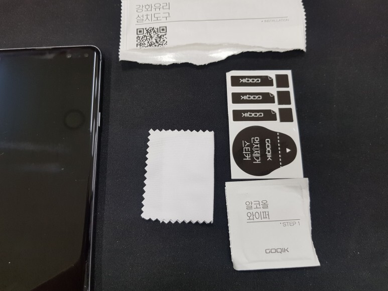 설치도구 안에는 융, 알코올페이퍼, 먼지제거 스티커가 있습니다.