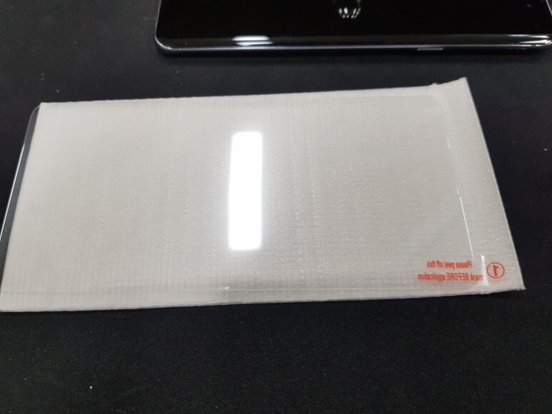 강화유리에 있는 1 이라고 써있는 라벨을 당겨서 비닐을 제거 합니다.