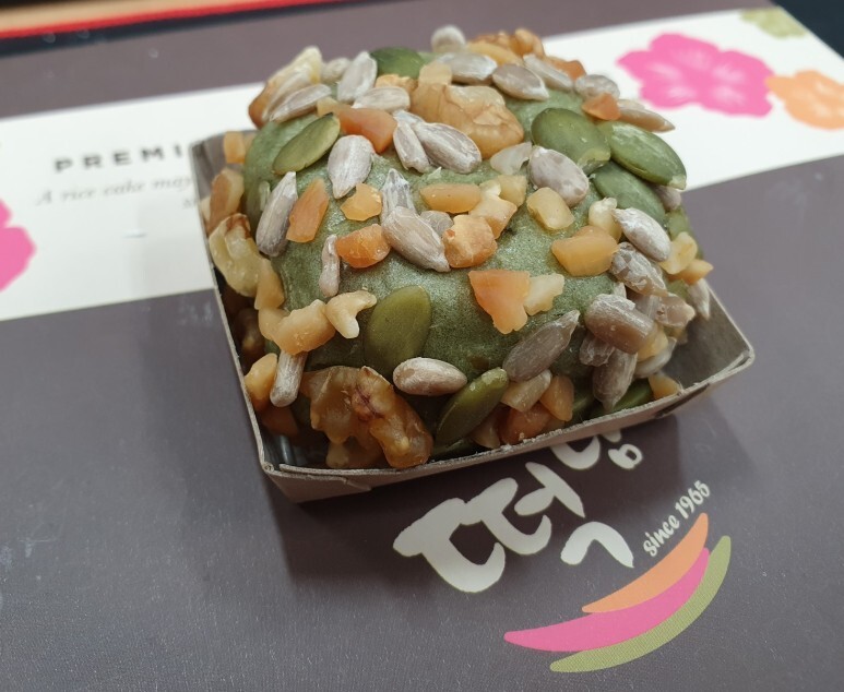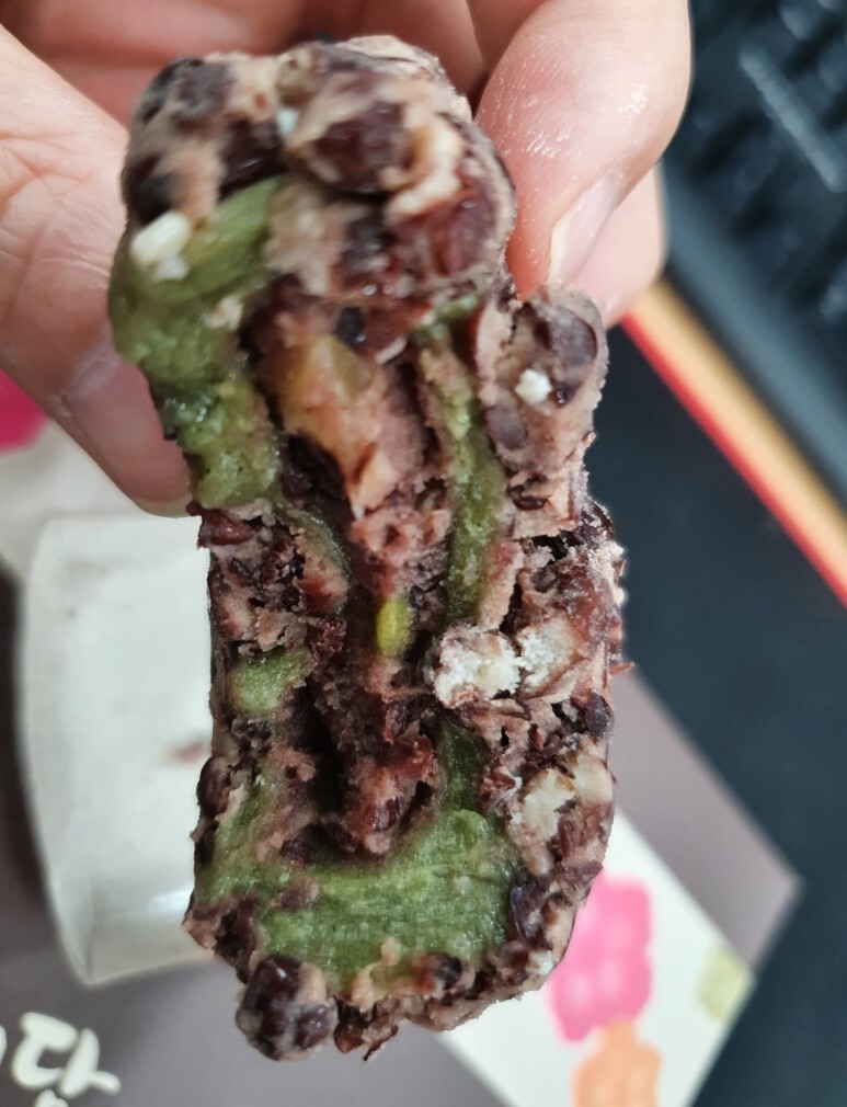 씨앗 오메기떡을 뜯어서 먹어 봤습니다.