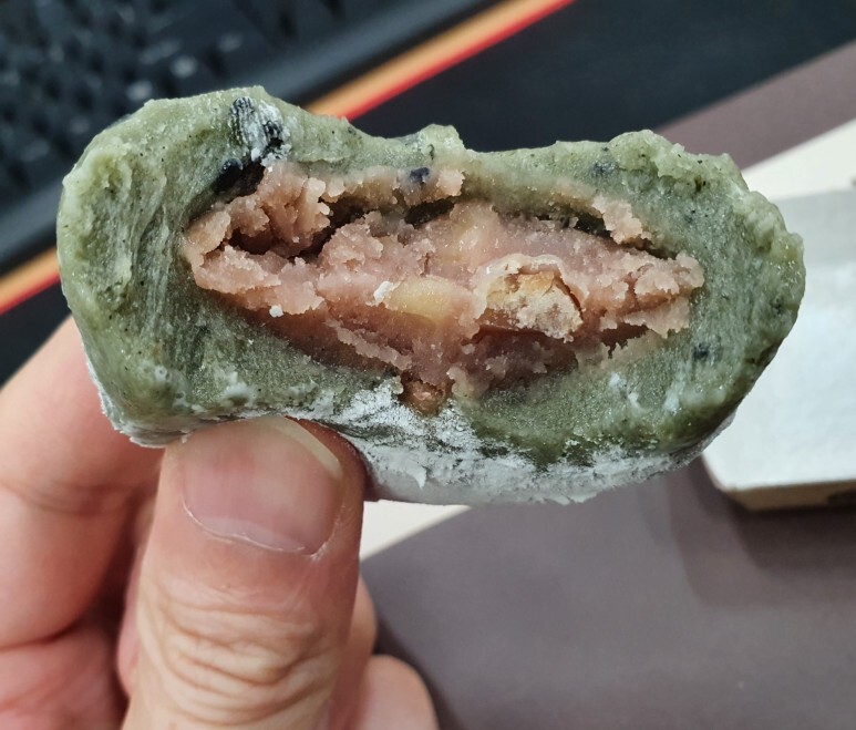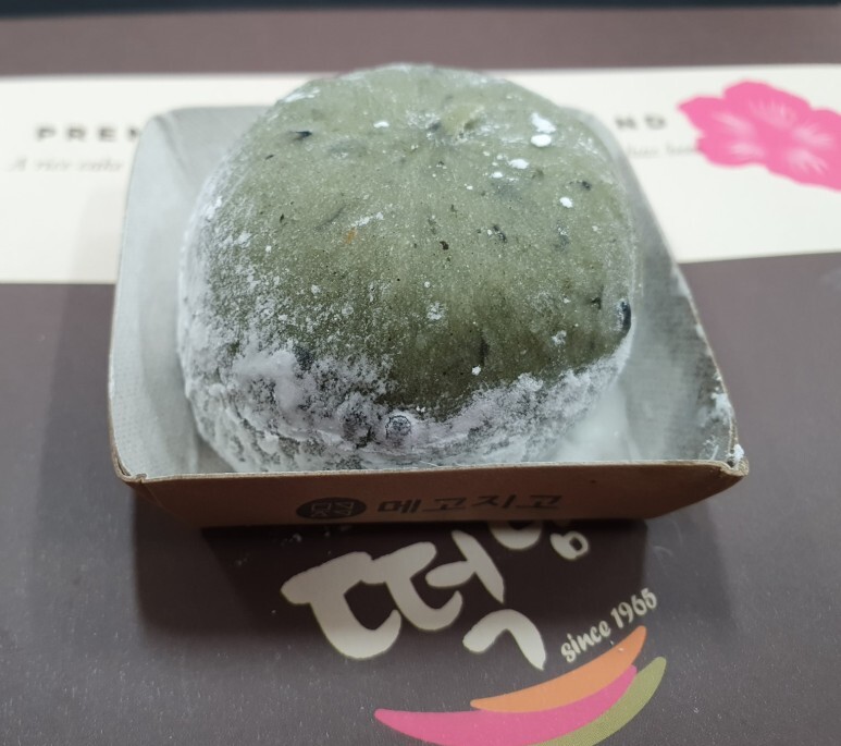 쑥 오메기 떡도 뜯어서 먹어 봤습니다.