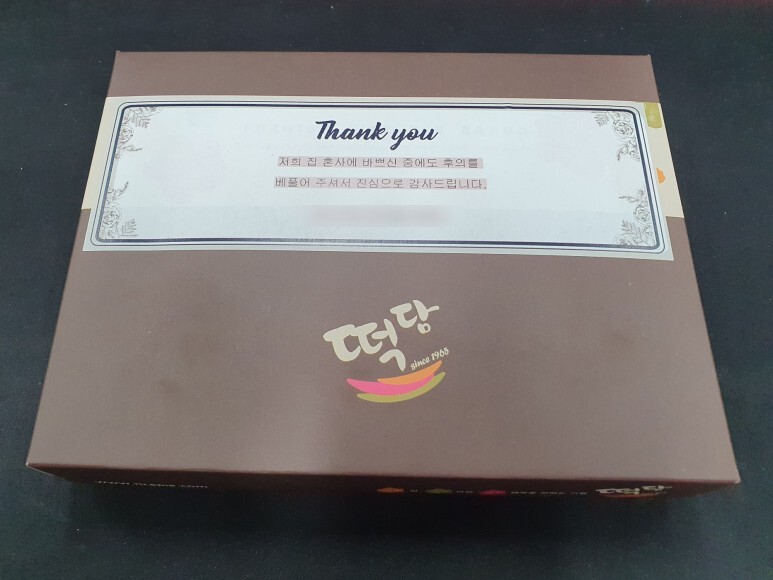 답례품 전문업체 떡담에서 만든 제품입니다.