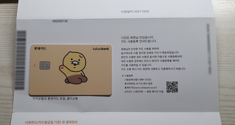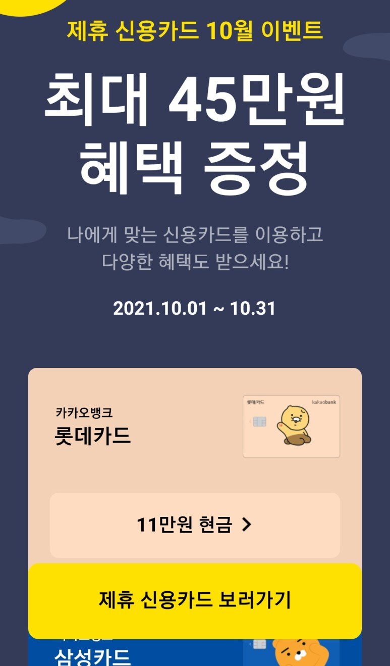 카카오 뱅크 제휴신용카드 이벤트 안내를 보고 신용카드를 신청해 봤습니다.