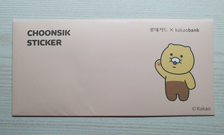 CHOONSIK STICKER 라고 인쇄되어 있는 봉투가 들어 있습니다.