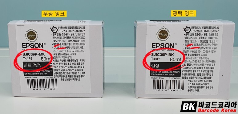 * 검정색 잉크는 검정(BK), 매트 검정(MK) 두가지로 구분 되어 있습니다.