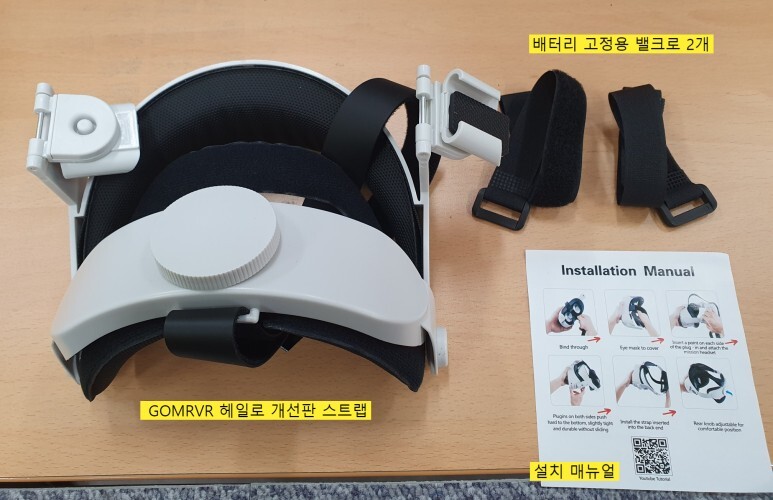 구성품은 GOMRVR 헤일로 개선판 스트랩, 배터리 고정용 밸크로 2개, 설치 매뉴얼 입니다.