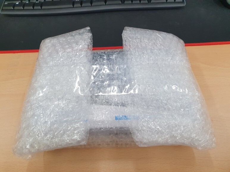 비닐 포장안에서 완충제로 포장된 제품이 나왔습니다.