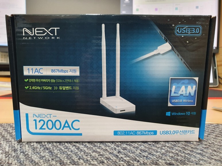그래서 듀얼밴드 USB 3.0 무선랜 카드 NEXT-1200AC 를 구입했습니다.