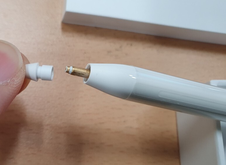펜슬 꼭대기 부분에는 라이트닝 커넥터가 있습니다.