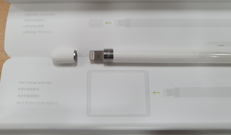 박스 안에는 충전용 부품과 여분의 펜촉, 애플펜슬 1세대 본체, 설명서가 들어 있습니다.