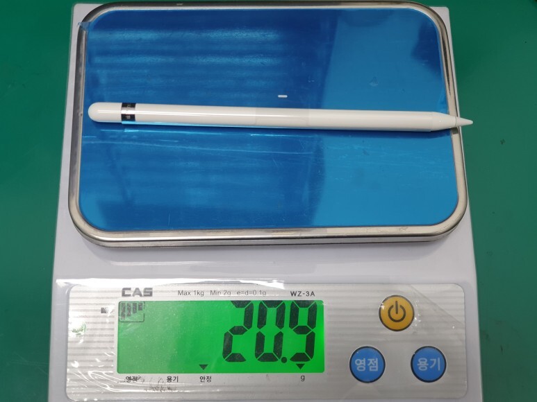 애플 펜슬 무게를 측정해 보니 20.9g 입니다.