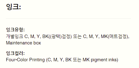 - 용지타입에 따라 (광택)검정(BK), 매트검정(MK) 타입 선택가능