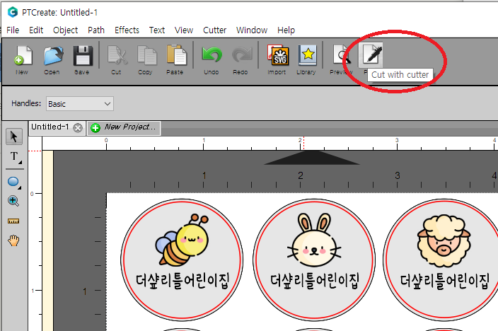 인쇄를 하기 위해 Cut with cutter 버튼을 클릭합니다.