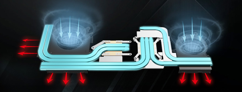 GF65 Thin 9SEXR 게이밍 노트북에 장착된 2개의 쿨링팬과 6개의 히트파이프로 구성된 쿨러부스트5 시스템은 CPU와 GPU전용 쿨링 솔루션으로 열을 최소화하고 공기 흐름을 최대화 하여 쾌적한 게임환경과 최고의 성능을 제공한다고 설명되어 있습니다.