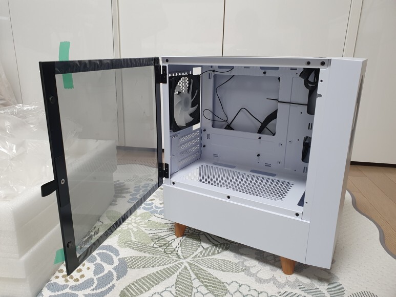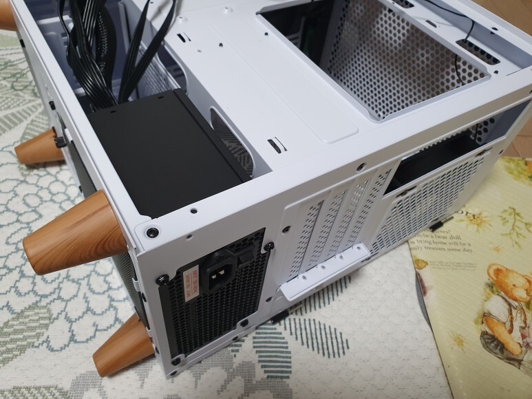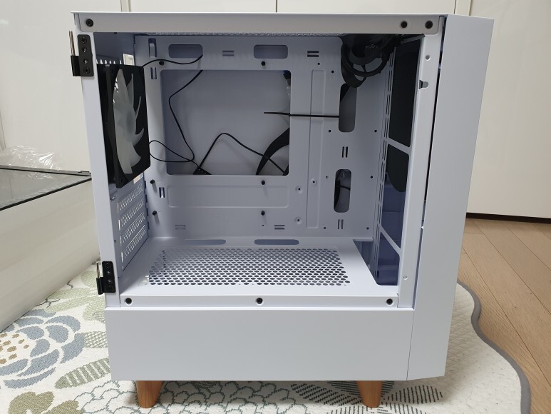 뒷판을 열었습니다. 여유로운 조립과 깔끔한 마무리를 가능하도록 설계되어 있습니다. 선정리 홀이 있어 다소 복잡할 수 있는 케이블 정리를 단순화함과 동시에 각 파츠의 편리한 연결이 가능하도록 되어 있습니다.