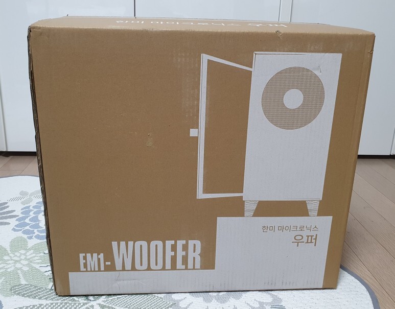 주문한 EM-1 woofer 미니 타워 PC 케이스가 택배로 도착했습니다. 박스 정면 모습입니다.