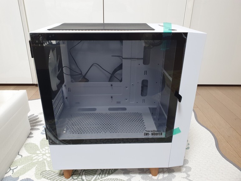 전면 160mm 쿨링팬으로 유입되는 차가운 공기를 내부의 열과 함께 상단과 후면에 배출하도록 설계되어 있고 다른 일반 케이스보다 높은 스탠드가 적용되어 파워서플라이의 쿨링 효율까지 끌어올린 마이크로닉스 EM1-Woofer 미니 타워 PC 케이스 내돈,내산 구입 교체기를 마치겠습니다.