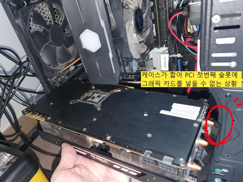 당근으로 구입한 그래픽카드를 넣으려는데 기존 사용하던 케이스가 짧아 그래픽 카드를 넣을 수 없습니다.