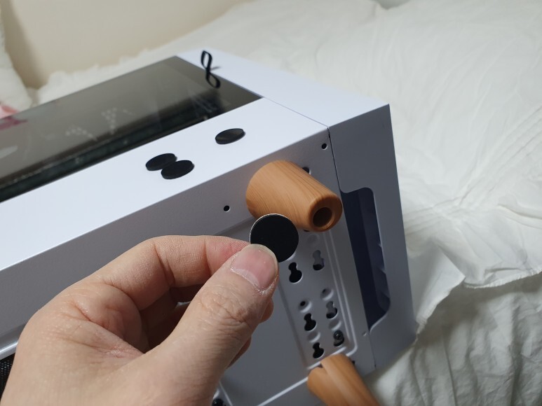 케이스 다리는 나무가 아니고 플라스틱이라 책상에서 쉽게 미끄러집니다.미끄럼 방지 패드를 붙입니다.