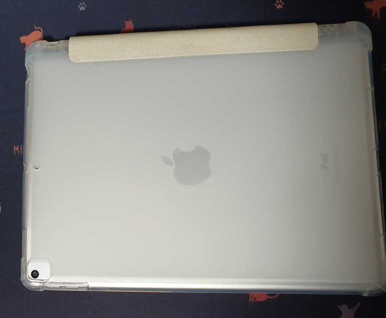 뒷판을 보면 테두리는 투명하고 뒷면이 보이는 곳은 아이패드9세대 케이스투명도가 낮은 반투명으로 되어 있어 뿌옇게 아이패드 뒷면이 보입니다.