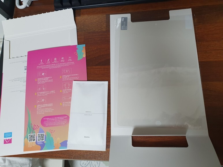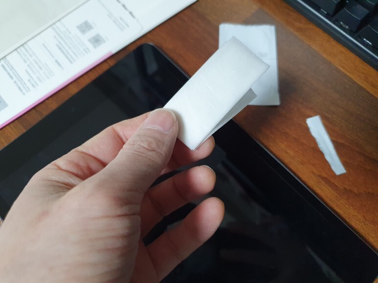 택배 포장 안에는 빳빳한 종이로 포장된 보호필름이 들어 있습니다.