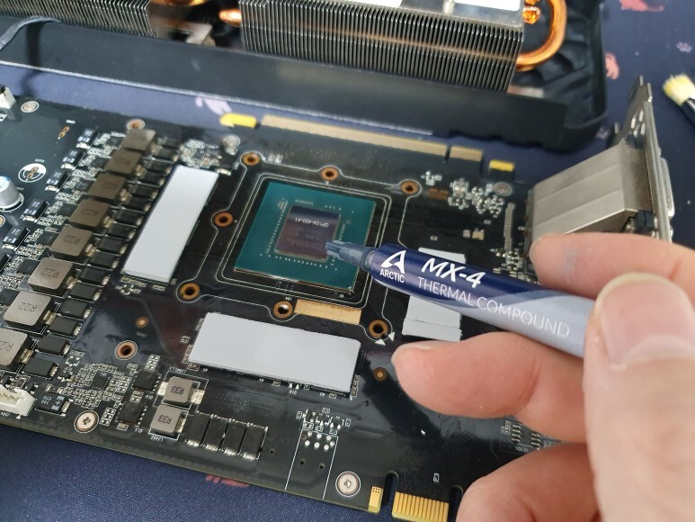 서멀구리스를 GPU에 짜고 주걱으로 펴발랐습니다.