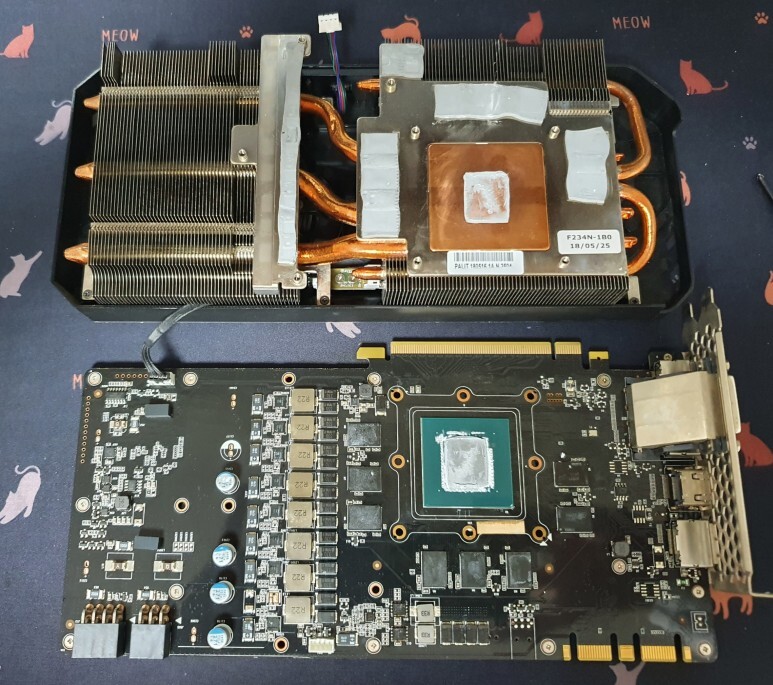 분리한 모습입니다. GPU에 서멀그리스가 굳어있지 않은 상태입니다. 그냥 사용해도 되는걸 괜히 작업하나봅니다.
