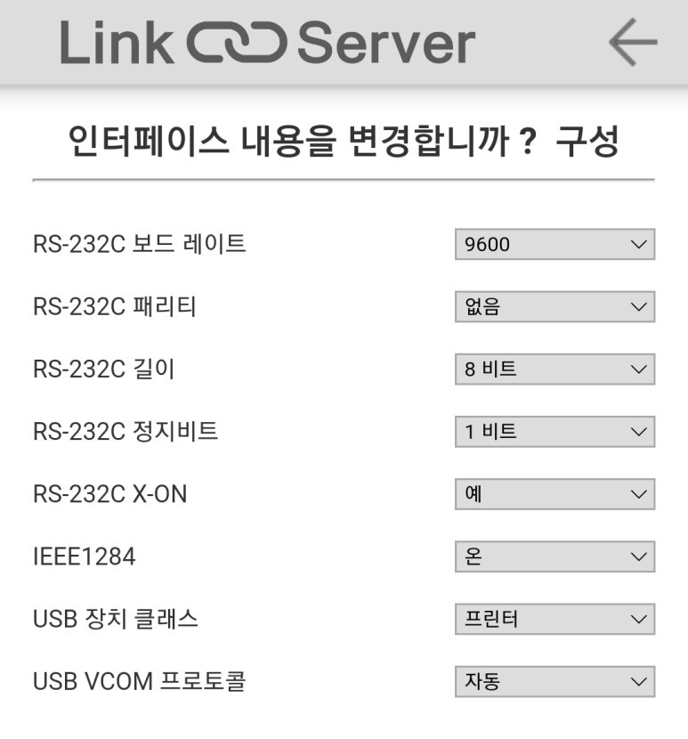 인터페이스 메뉴에서는 통신 포트관련 설정을 변경할 수 있습니다.