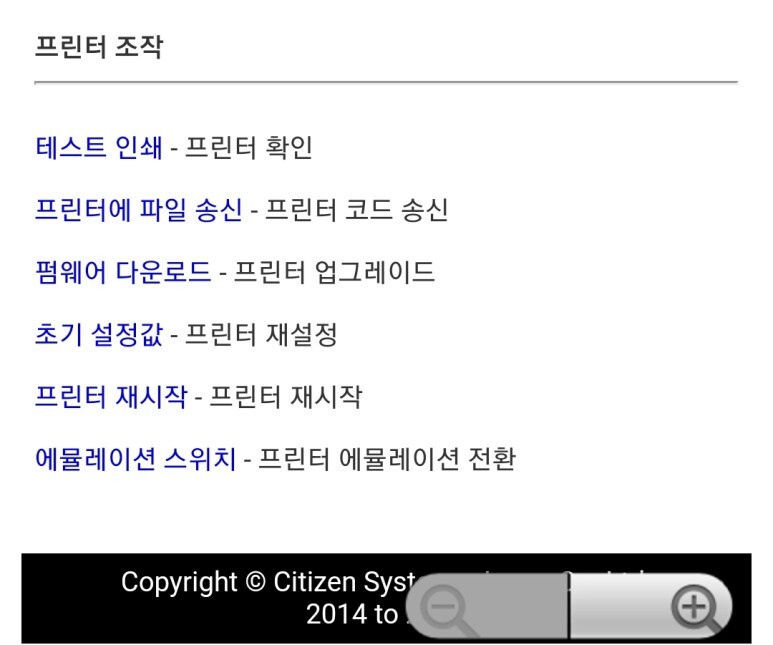 프린터 테스트페이지 인쇄 펌웨어 업그레이드 메뉴, 프린터 초기화 등을 할 수 있는 메뉴도 있습니다.