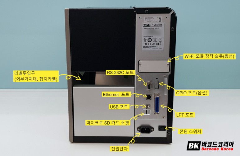 RS-232C, Ethernet, USB, LPT 포트가 기본 제공되며 옵션으로 GPIO, Wi-Fi 모듈을 장착 할 수 있습니다.