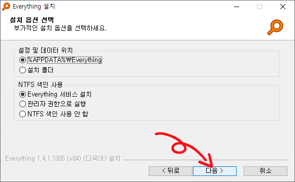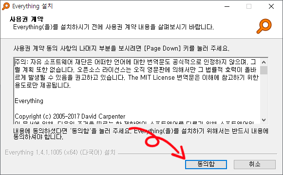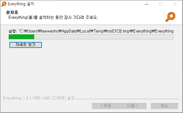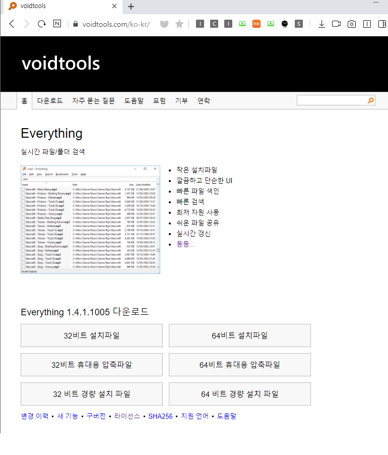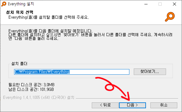* 파일과 폴더 이름만 검색하며 처음 설치시 데이터베이스를 구축하는데 수초가 걸립니다.
