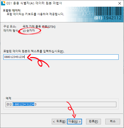 포함된 데이터 화면에서 GTIN 13자리를 입력합니다.