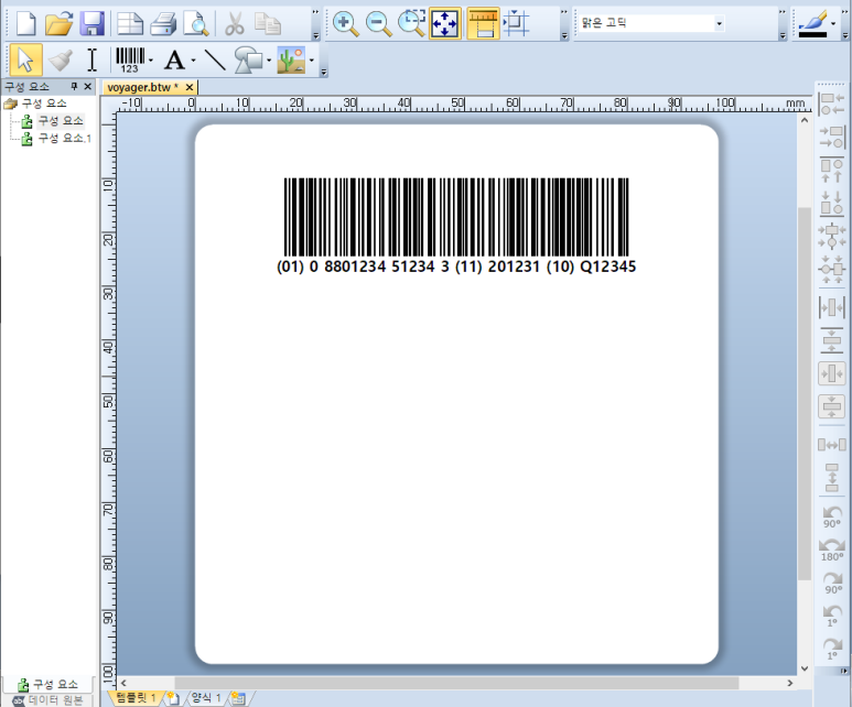 바텐더 프로그램을 사용하여 GS1-128 UDI 표준코드 형식으로 만들어 보겠습니다.