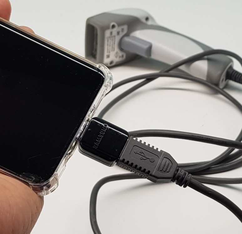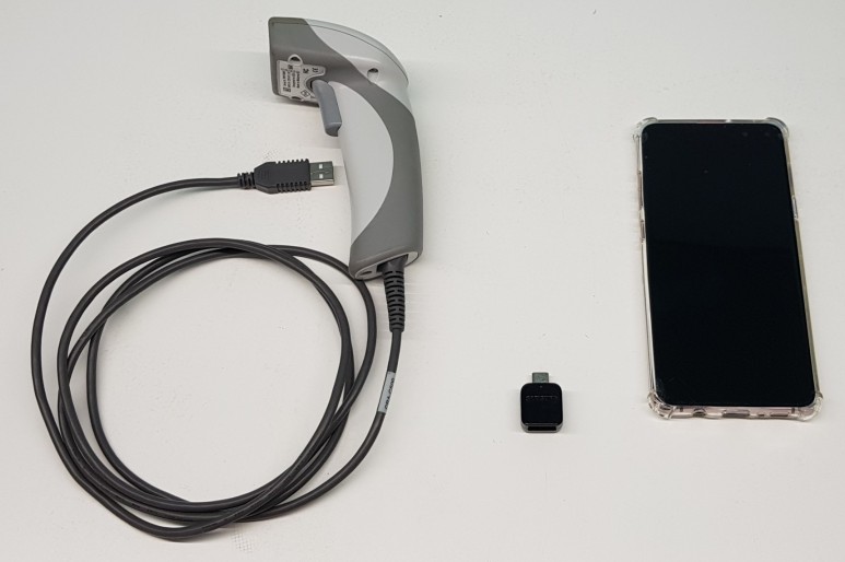핸디터미널로 자재 창고에서 해당 제품의 바코드를 스캔하여 스캔한 바코드 값을 수집하는 기능만 사용하는 경우에는 유선 스캐너와 스마트폰을 연결하여 동일하게 사용하는 방법이 있습니다.