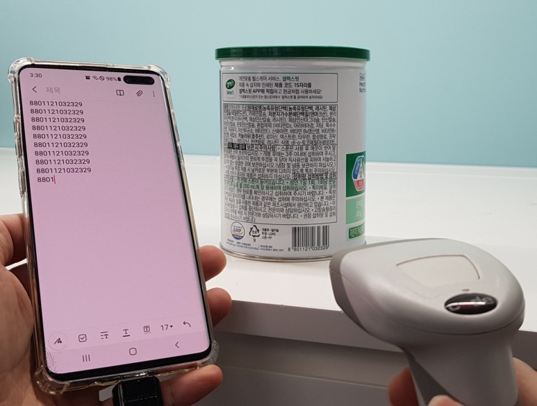 스마트폰 메모장을 실행하고 바코드를 스캔하면 메모장에 바코드데이터를 수집할 수 있습니다.
