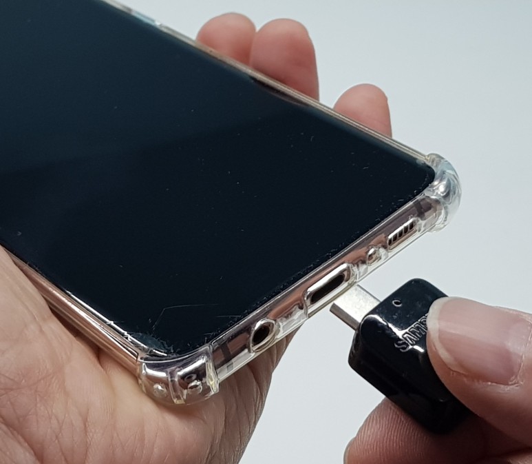 변환 젠더를 스마트폰 USB-C 단자에 연결합니다.