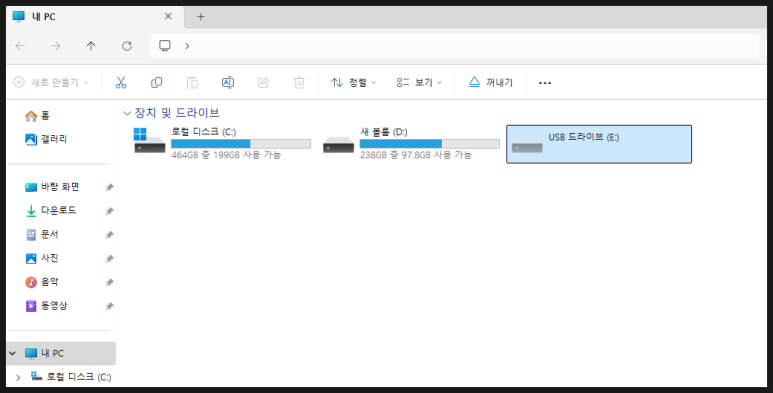 마이크로 SD 카드가 장착되어 있으면 드라이브가 활성화 되어 파일을 관리할 수 있습니다.