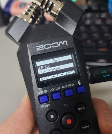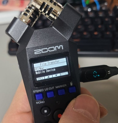 USB 케이블로 컴퓨터와 연결하면 USB 마이크로 사용할건지 파일 전송을 할건지 선택하는 메뉴가 나옵니다. USB 마이크를 선택하면 PC 에서 마이크로 바로 인식이 됩니다.