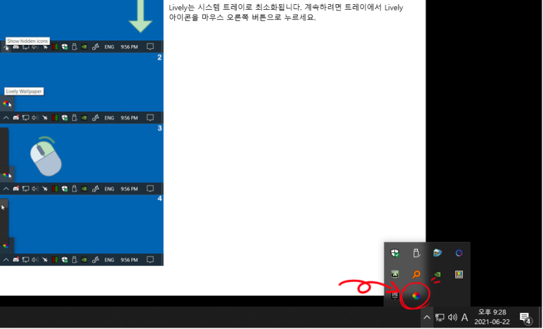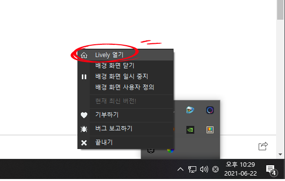 Lively wallpaper 프로그램이 실행 되었습니다.