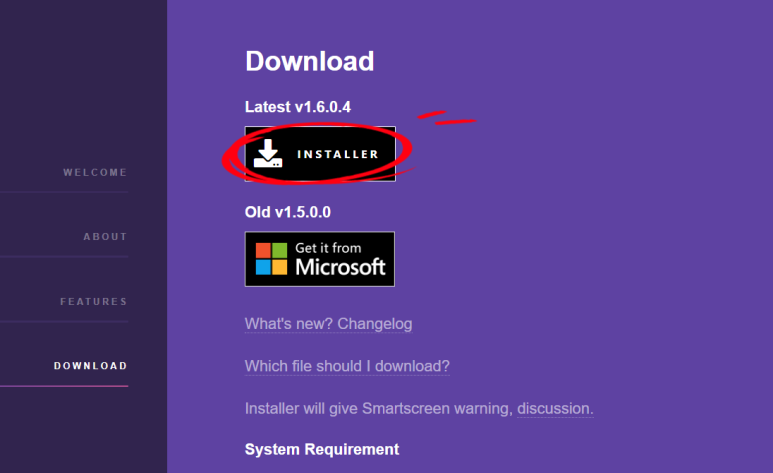 "INSTALLER" 를 클릭합니다.