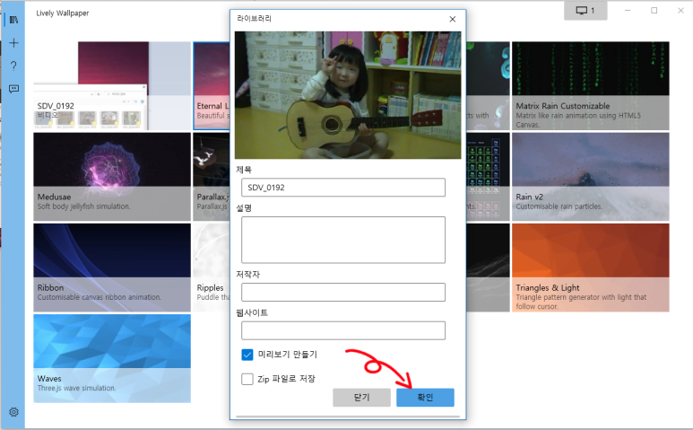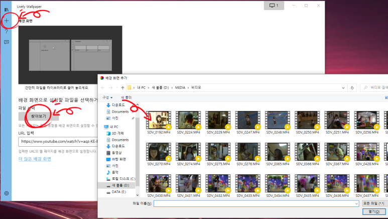 추가된 영상을 클릭하면 배경화면에 바로 적용 됩니다.