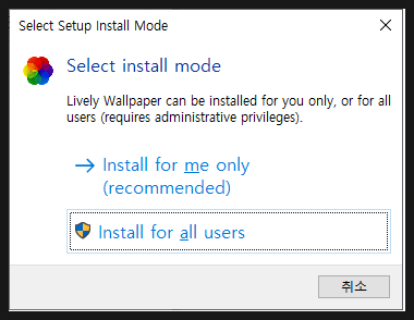 다운 받은 파일을 실행하고 Install for all users 를 선택합니다.