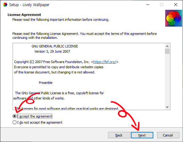 NEXT 클릭 --> I accept the agreement 선택 --> NEXT 클릭