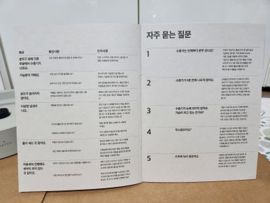 포장박스를 개봉하면 맨 위에 설명서가 보입니다.
