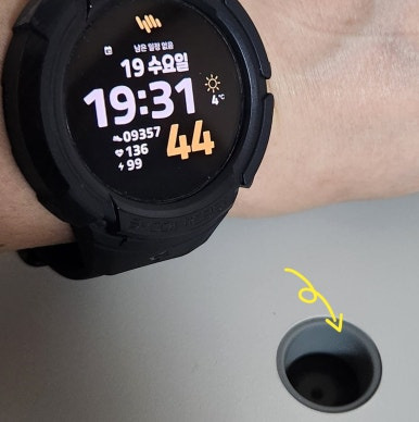 19:24분에 작동을 시작하고 약 7분 정도 지나서 확인해보니 분무구에 이슬이 맺히는 것이 보이고 손을 가져다 대보니 따뜻한 바람이 나오고 있었습니다.