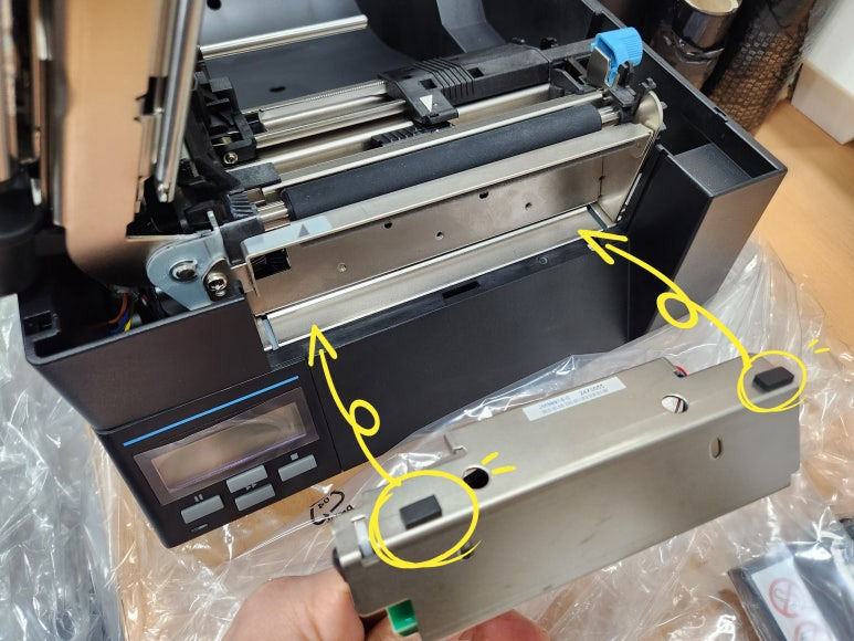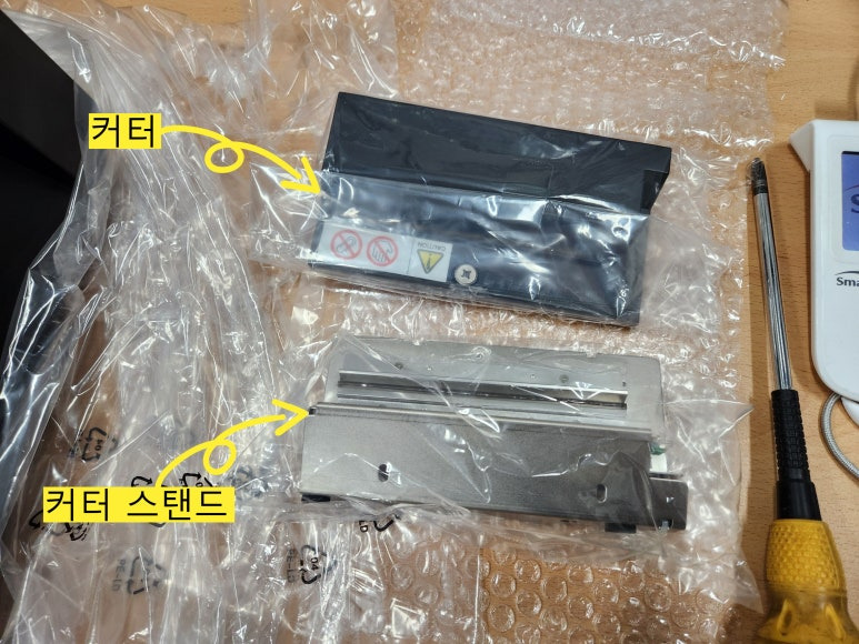carelabel 이나 연속 용지를 사용하는 경우 설정한 길이만큼 인쇄하고 라벨을 잘라내야 할때 커터를 사용하면 됩니다. CL-E720 라벨프린터에 커터 장착하는 방법을 알아 보겠습니다.
